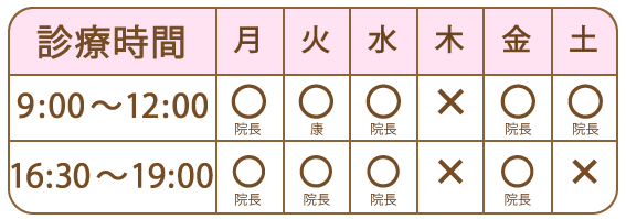 ※午前は12時、午後は19時に診察終了とさせていただくため場合によっては人数等を制限させていただく可能性がございます。